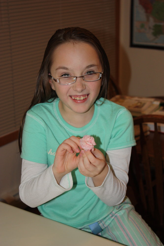 Isaac has decided his favorite math activity is setting up a “store” so he can practice “buying” candy and cereal while learning how to count dimes and pennies. He learned how to perform simple two-digit addition on a “store receipt.”
