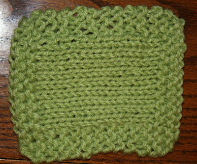 Above: My first dishcloth. It has a diamond pattern in it but it is hard to make out in the picture. This was my first practice following a pattern.