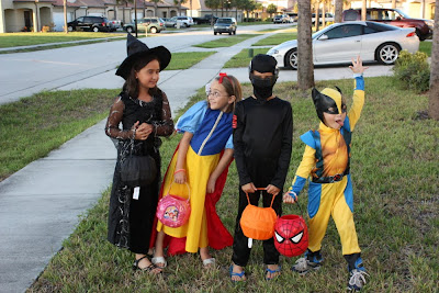 My friends children, CJ and Brian got to go Trick-or-Treating with us while their mom worked that night. The four kids had a blast together!
